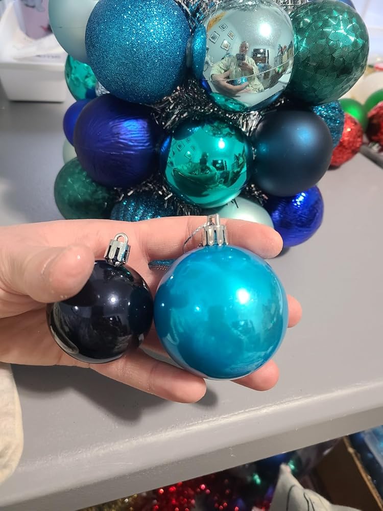 | - Size: | Christmas ornament set has 40mm / 1.57" / Set of 40; 60mm / 2.36" / Set of 30; 80mm / 3.15" / Set of 16; 100mm / 3.94" / Set of 6 large Christmas ornament balls |