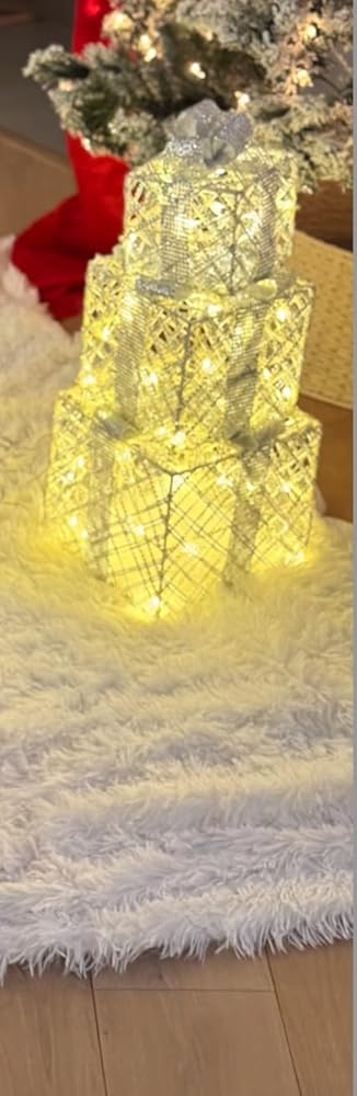 Brighten your holiday décor with this Set of 3 Christmas lighted gift boxes featuring 48 warm LED lights. Perfect for indoor and outdoor use, these pre-lit present boxes add a festive glow to your home, yard, or Christmas tree display. Easy to set up and reusable for every holiday season.