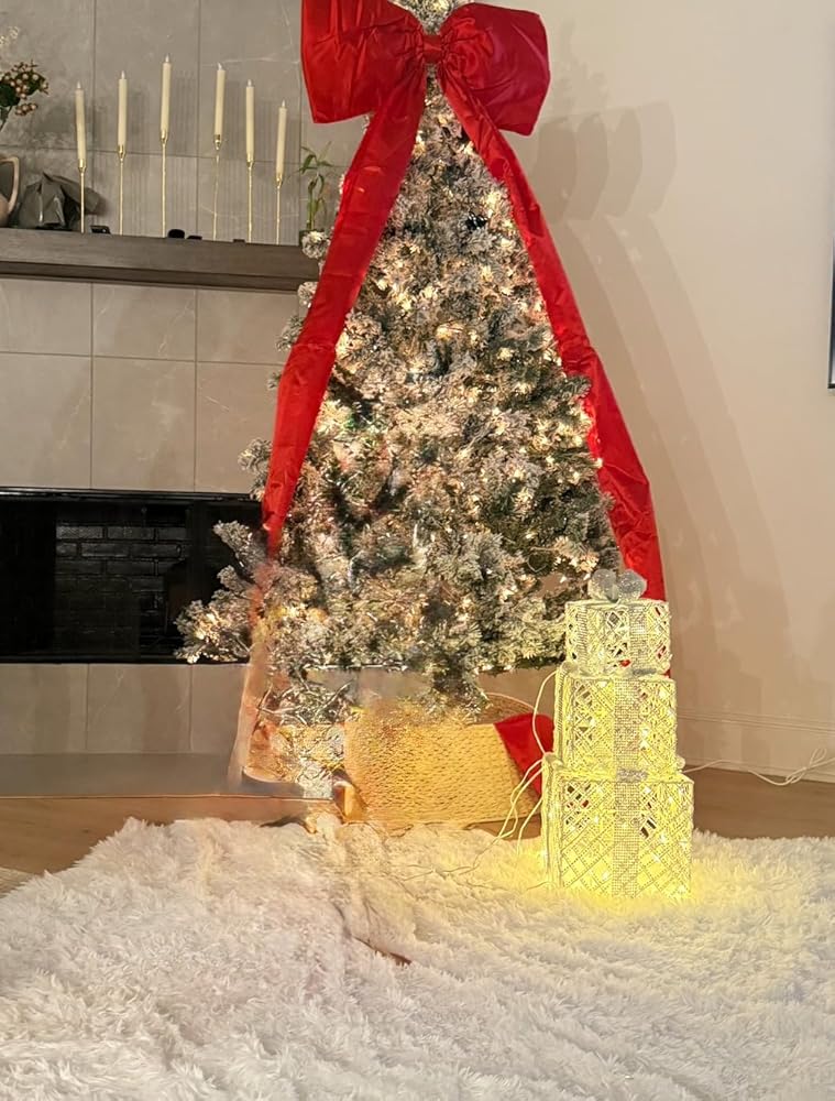 ran hauyn These lighted festive boxes from Tangkula are absolutely stunning! The set of three boxes, each with its own detachable bow and sparkling crystals, adds the perfect holiday charm to my home decor. The rope-woven design gives them a unique and elegant look, and when lit up by the 50 LED lights, they create a warm, magical ambiance.