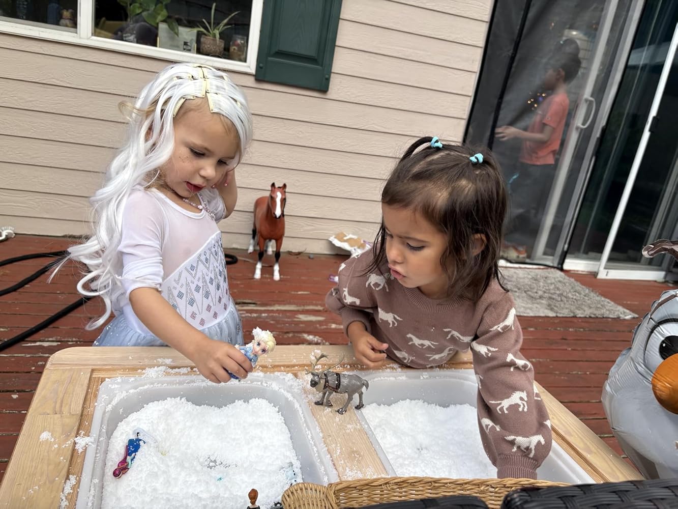 - Exciting Sensory Play: Discover the fun of instant snow, offering a variety of experiences that keep kids engaged and entertained for hours. The perfect fake snow sensory bin idea for your child’s next birthday party.